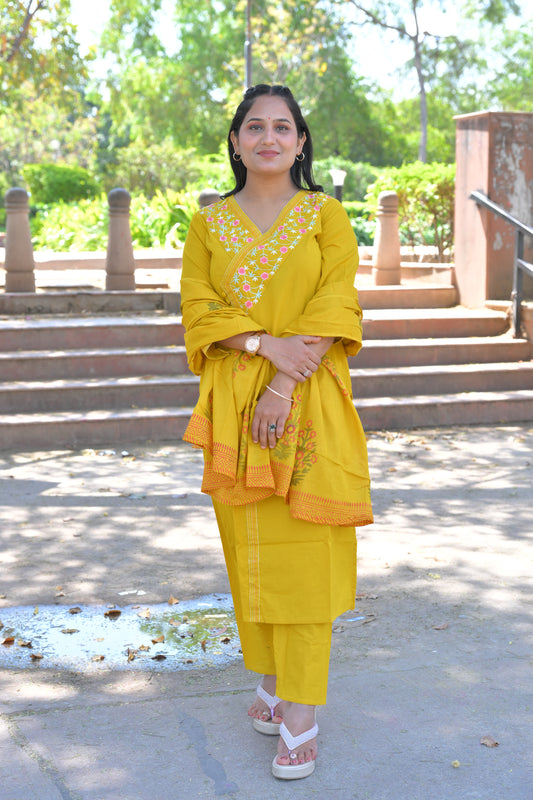 Pure Fine Cotton Fabric Embroidery Work Kurti With Pant
