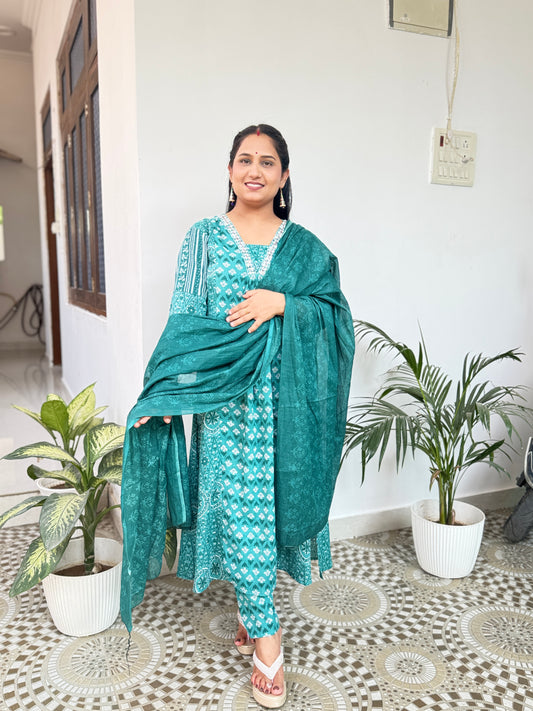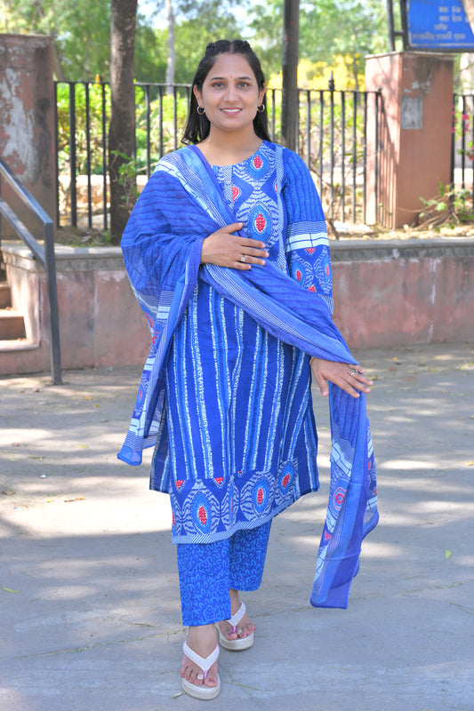 Bhandani Print Sky Blue Kurta Set With Embroidery